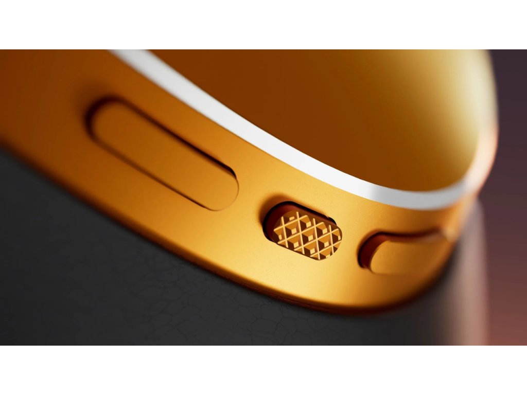 Antracitově šedá kůže Nappa na všech hlavních površích a sluchátka v metalické papájové barvě dodávají vzhledu novou eleganci, zatímco reliéfní logo McLaren na hlavovém mostu dotváří jejich styl.