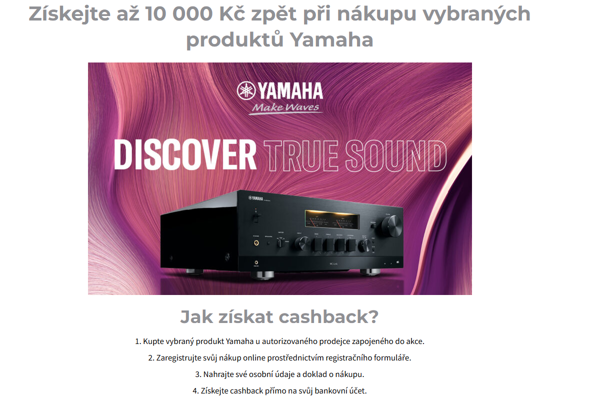 Svůj nákup zaregistrujte online zde: https://www.yamaha-hifi.cz/cashback/