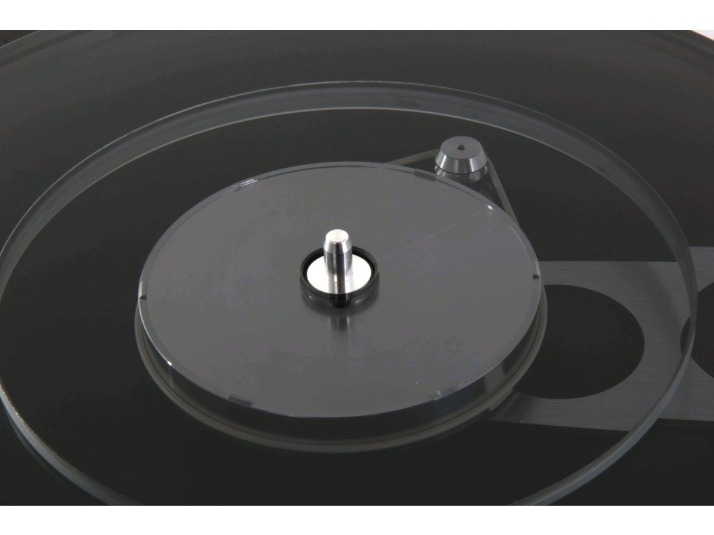 Dvouvrstvý skleněný talíř s leštěným okrajem je usazen na hliníkovém unašeči s přesným mosazným ložiskem. Tento systém zajišťuje plynulé otáčení a minimalizuje tření. Výsledkem je čistý zvuk bez zkreslení, který vynikne při každé desce.