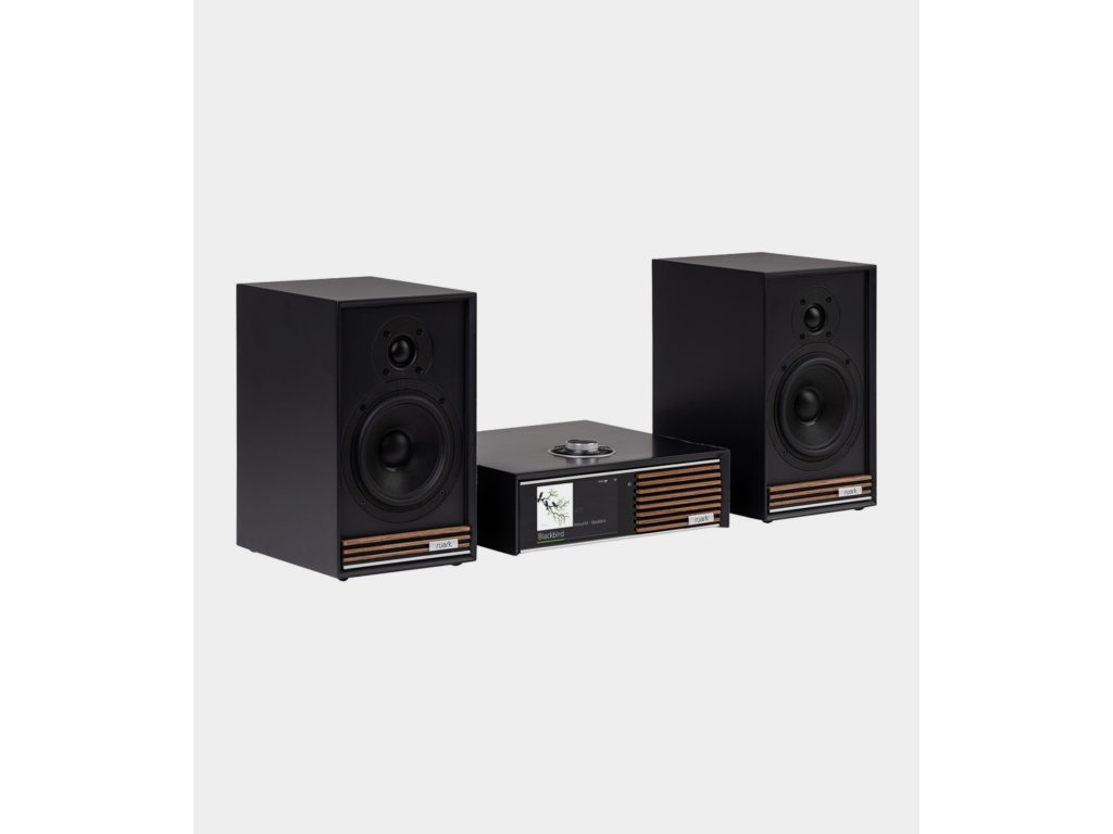 Ruark evokuje hifi centra 70. let s ručně zpracovaným dřevěným kabinetem v ořechovém nebo černém laku. Tenký profil (95 mm) a decentní dřevěná mřížka zapadnou do moderních i klasických interiérů. Prémiový vzhled podtrhuje 5" TFT displej s artworkem alb.