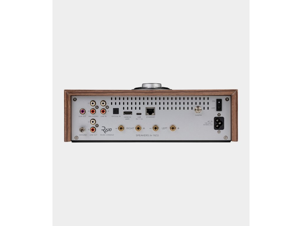 R610 nabízí HDMI ARC/eARC, optický vstup, stereo RCA vstup/výstup, subwoofer výstup a Ethernet pro stabilní síť. Bluetooth aptX HD zajišťuje kvalitní bezdrátový přenos. Připojte TV, gramofon, konzoli nebo subwoofer Ruark RS1 a vytvořte si systém přesně podle svých potřeb.