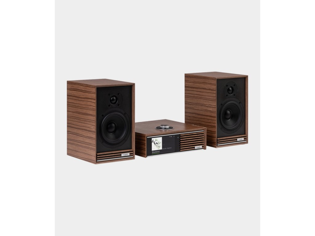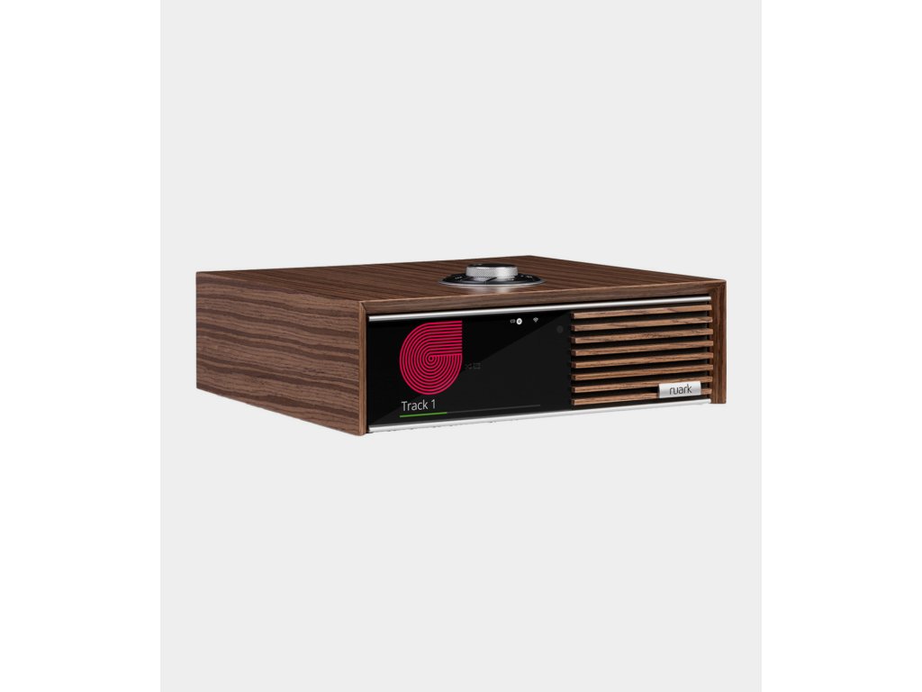 Ruark evokuje hifi centra 70. let s ručně zpracovaným dřevěným kabinetem v ořechovém nebo černém laku. Tenký profil (95 mm) a decentní dřevěná mřížka zapadnou do moderních i klasických interiérů. Prémiový vzhled podtrhuje 5" TFT displej s artworkem alb.
