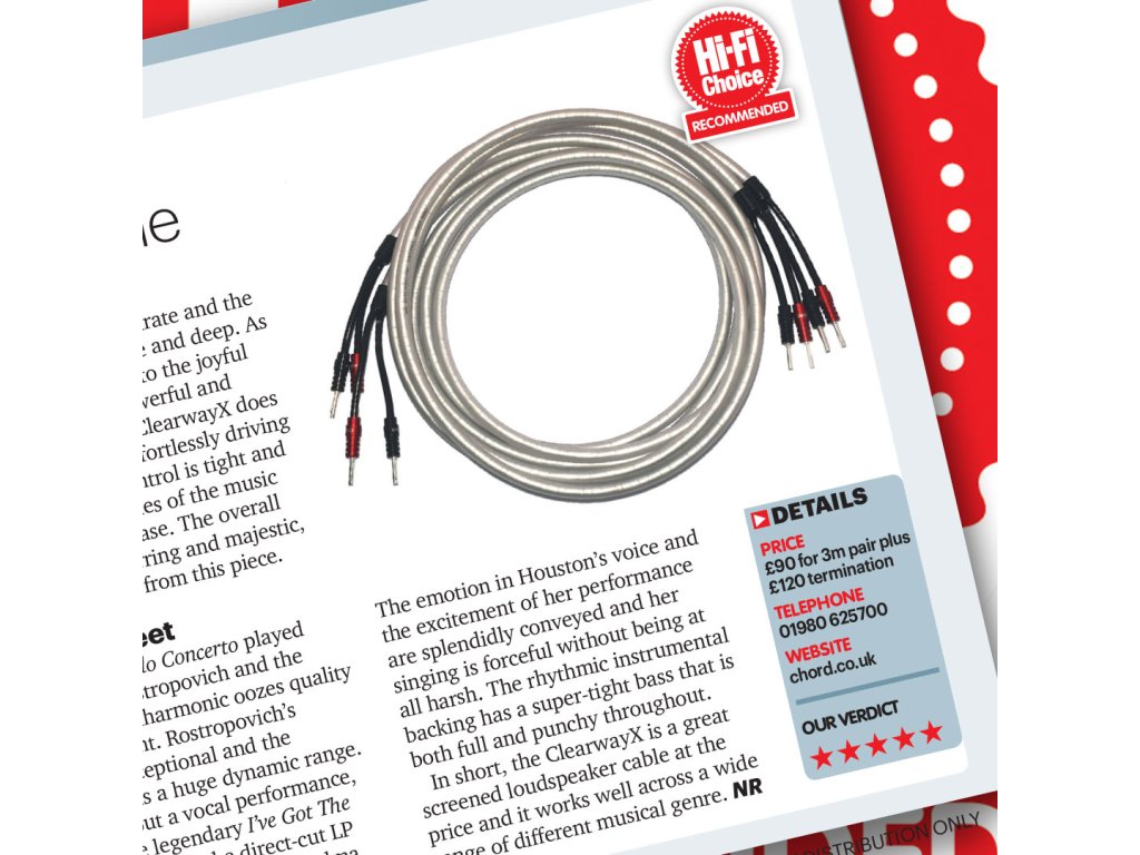 Nabízí výkon a hodnotu. Reproduktorový kabel Chord Company ClearwayX je několikanásobným držitelem 5 hvězdiček v recenzích WHAT HIFI? a ocenění. Využívá chytrou kombinaci materiálů (včetně naší nejnovější izolace XLPE) k vytvoření reproduktorového kabelu s úrovní výkonu, která obvykle stojí mnohem více!