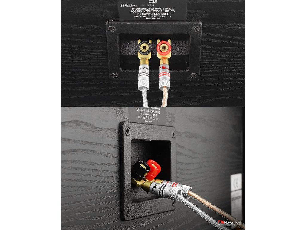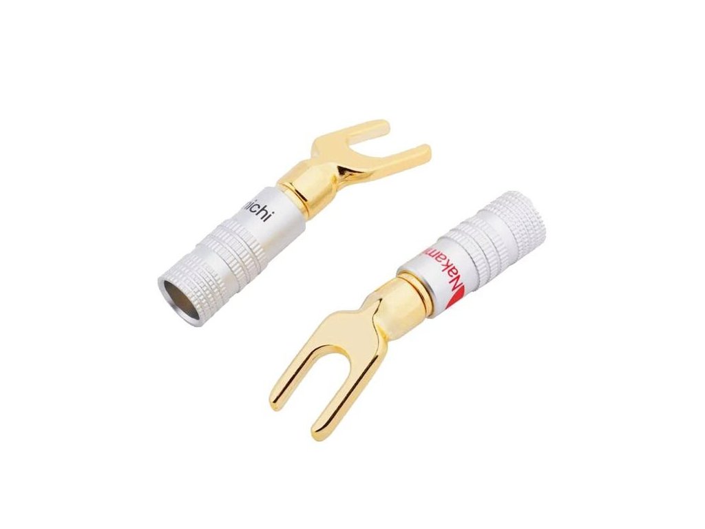 Reproduktorový konektor- vidlička, pro optimální připojení reprosoustav k zesilovači nebo receiveru. Minimální přechodový odpor.