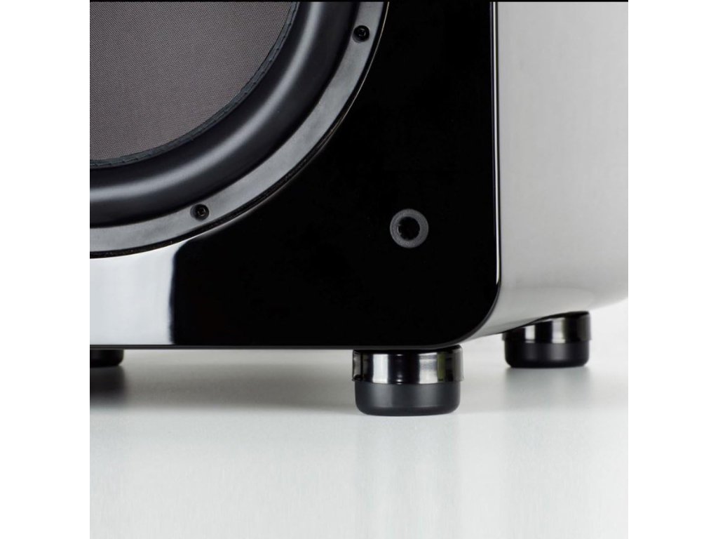 Patky mají gumovou spodní vrstvu, která se jen položí pod nohy subwooferu – žádné šroubování, lepení ani úpravy. Stačí zvednout sub (nebo ho naklonit), podložit patky a je hotovo za 2 minuty. Fungují na jakýkoliv typ podlahy (laminát, parkety, dlažba, koberec, beton).