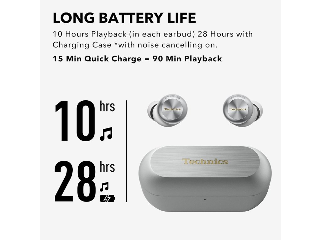 Sluchátka Technics EAH-AZ100 jsou špičková True Wireless sluchátka navržená pro nejnáročnější posluchače. Nabízí precizní zvukový přednes, který je podpořen technologií aktivního potlačení hluku nové generace. Kromě skvělého zvuku potěší i vysokým komfortem nošení, dlouhou výdrží baterie a odolností vůči stříkající vodě. Jsou ideálním řešením pro každodenní použití i náročné cesty.