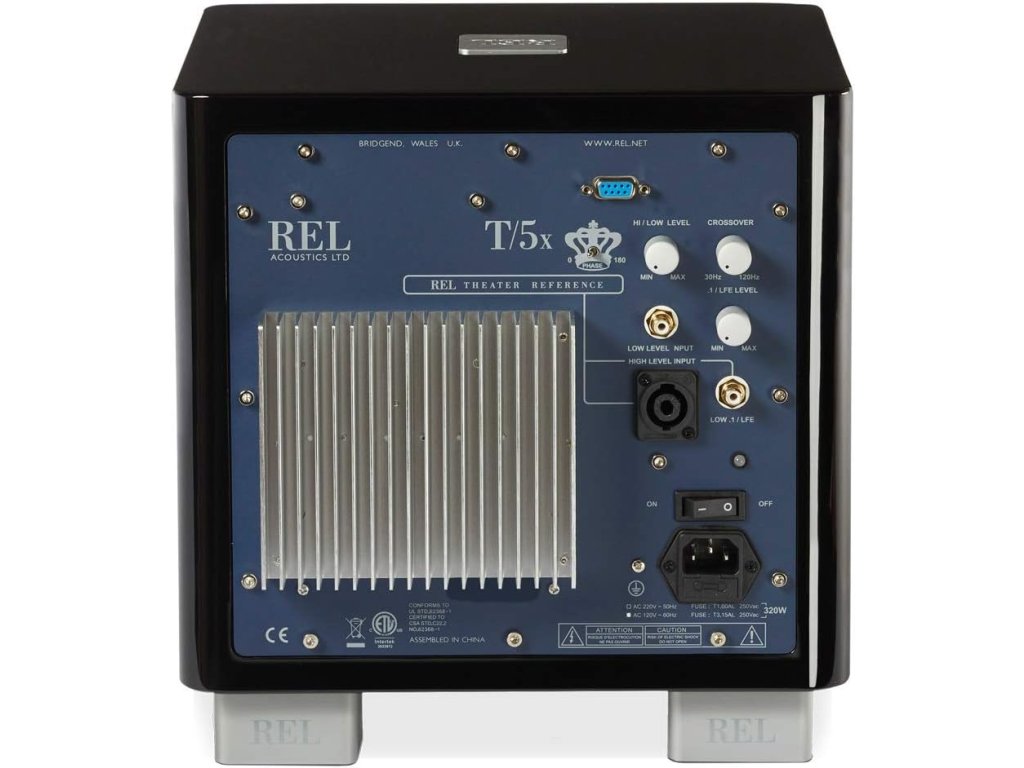 Subwoofer t/5x staví na drahých a spolehlivých zesilovačích třídy A/B s výkonem 125 W. Celá skříň je současně velmi rigidní, o to se stará ocelové šasi celé konstrukce. Špičkové inženýrství firmy REL dosáhlo toho, že při náročném přechodu ze sterea do zvuku domácího kina není nutné přenastavování subwooferu.