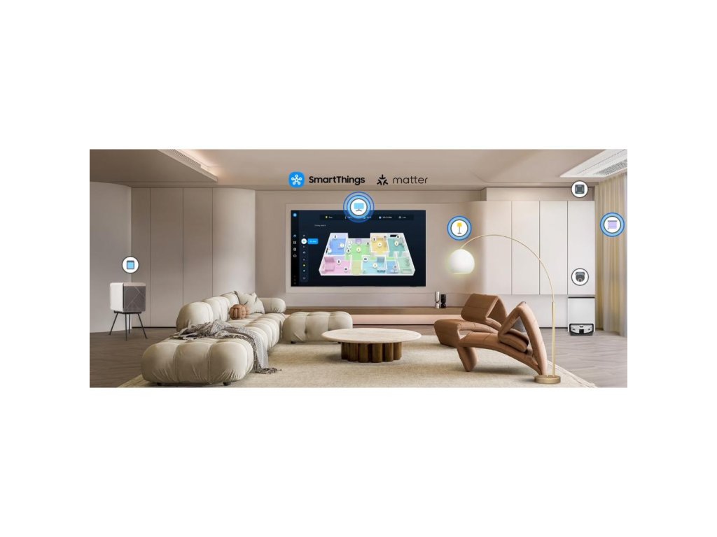 Ovládání: Tizen OS, hlasový asistent Bixby, SmartThings